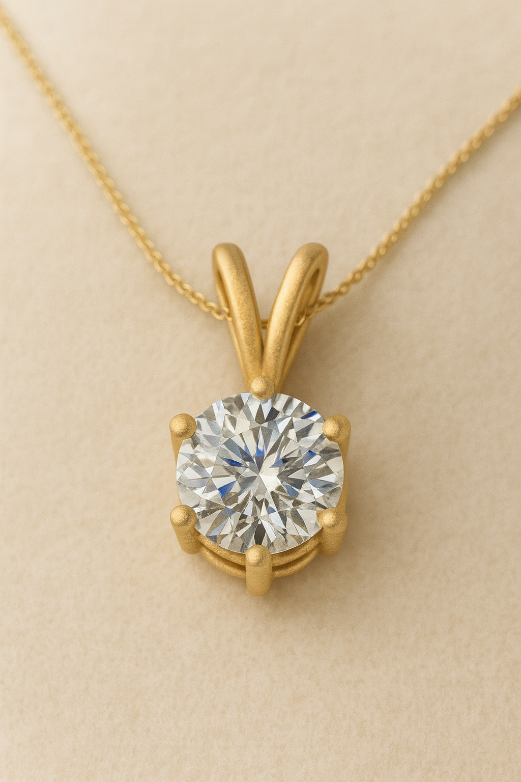 One Carat Classic (Satin Finish) solitaire design featuring a brilliant 1-carat diamond at its center. The soft satin finish on the 14k Yellow Gold and 14k White Gold setting adds understated elegance, allowing the diamond’s brilliance to stand out beautifully.