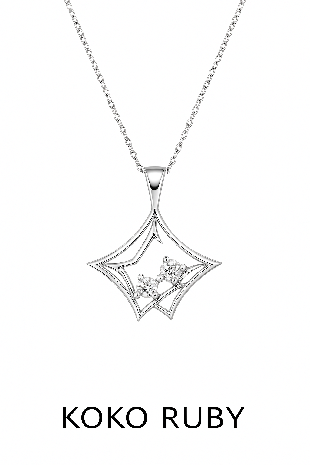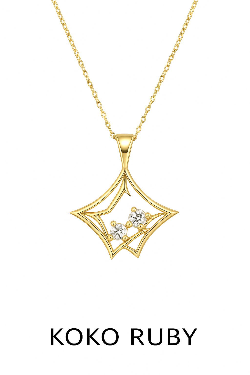 Crafted in 14K gold and adorned with two brilliant diamonds, this pendant draws inspiration from the stars that shine in the night sky. Its geometric silhouette is reminiscent of a celestial sparkle, yet it also evokes the elegant form of a cat raising its tail—a tribute to graceful companionship.