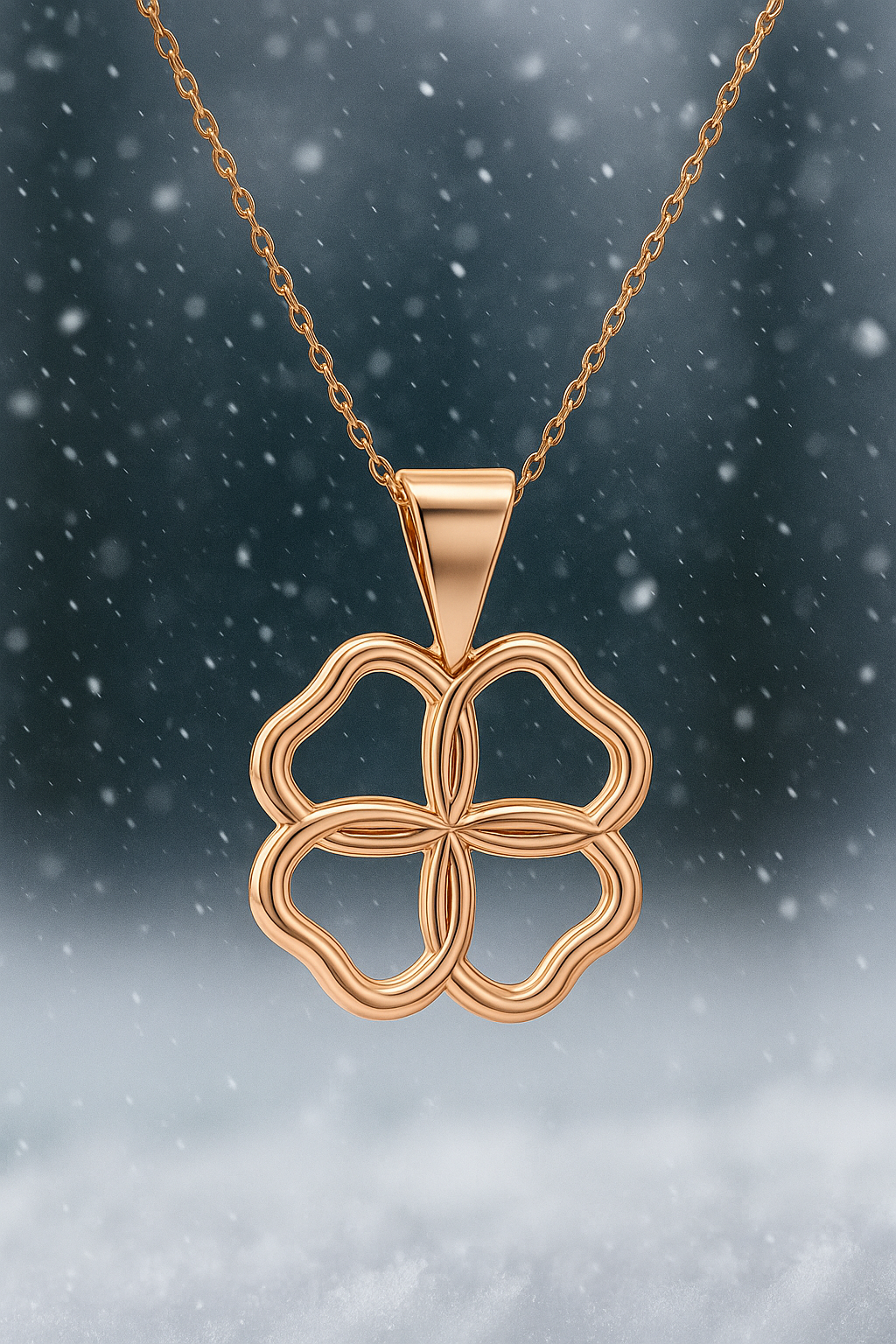 Crafted in 14K rose gold, the Winter Clover pendant embodies timeless elegance and the gentle warmth of hope. The four delicate heart-shaped leaves symbolize faith, hope, love, and luck, making it more than just an accessory — it’s a personal charm to carry with you every day.